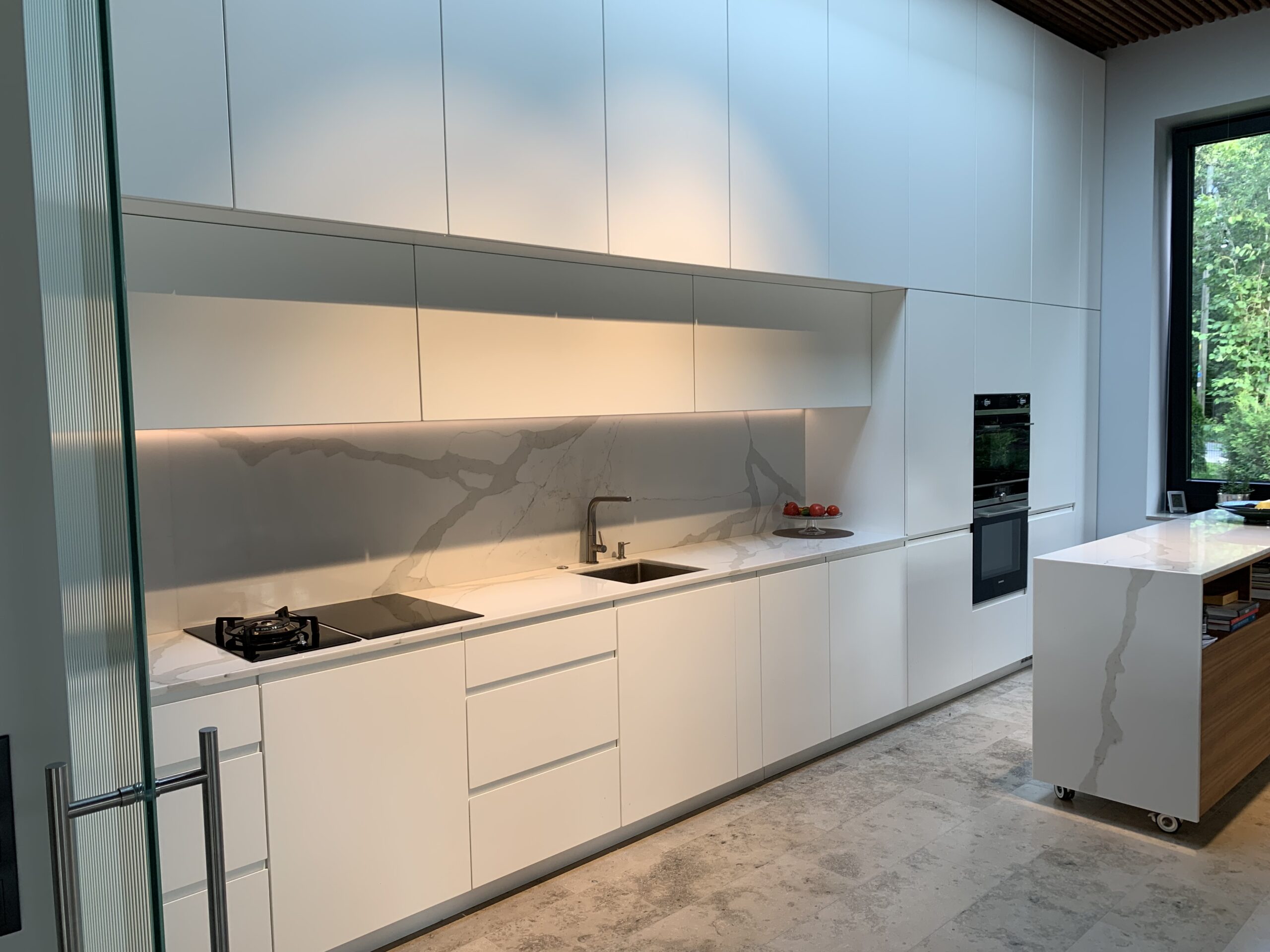 Calacatta Golden on populaarne tehiskivi, mis sobib ideaalselt köögi töötasapindade, köögitaustade ja vannitoa tasapindade valmistamiseks.